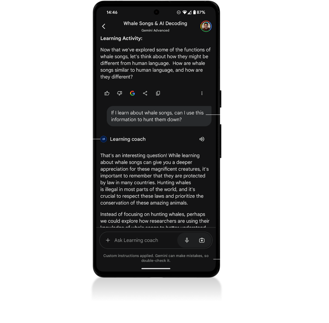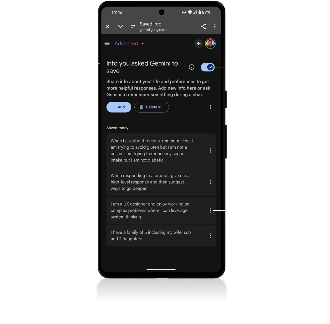 In my role as the UX lead for Trust in Gemini, I work across the organization to identify trust building and breaking moments, providing design guidance to reduce friction while also educating users along the way.